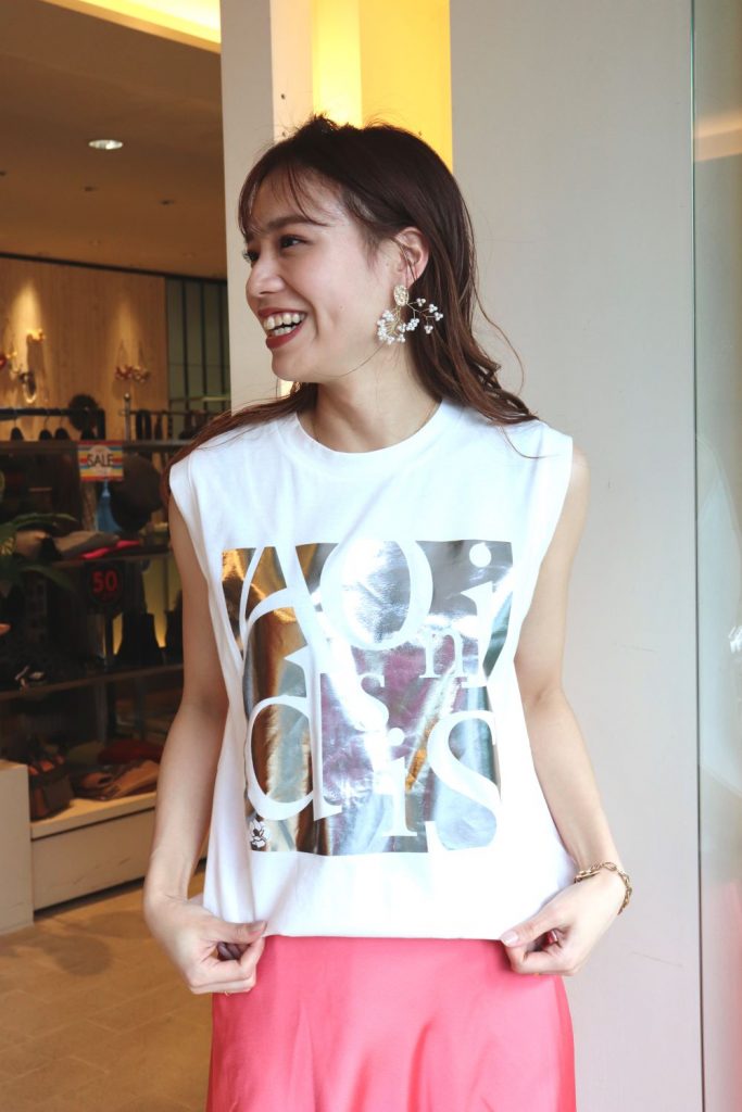 箔スクエアプリント×英字ロゴタンクトップ